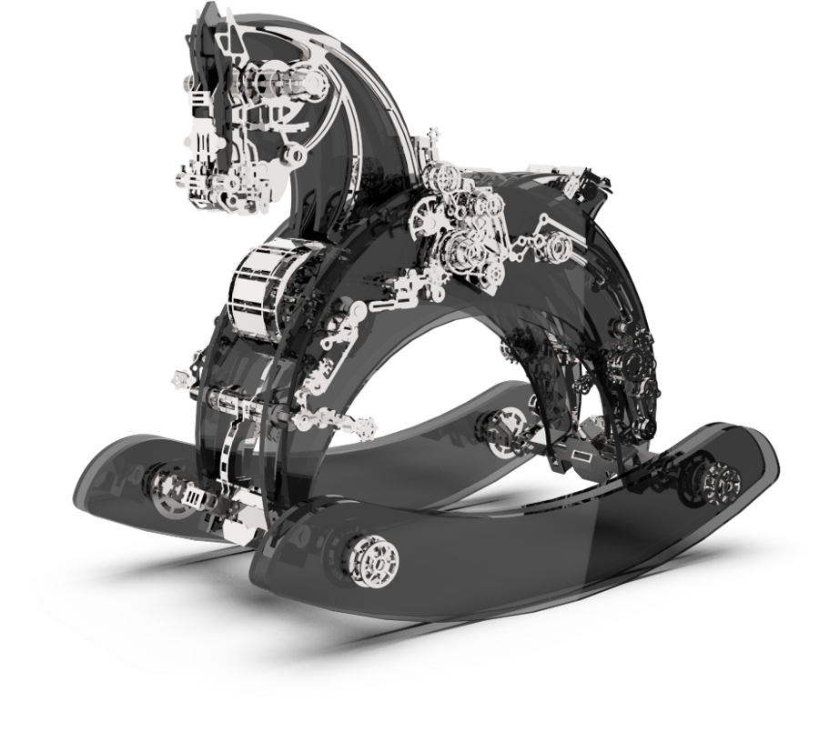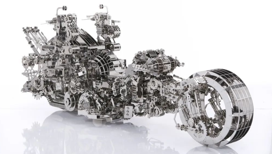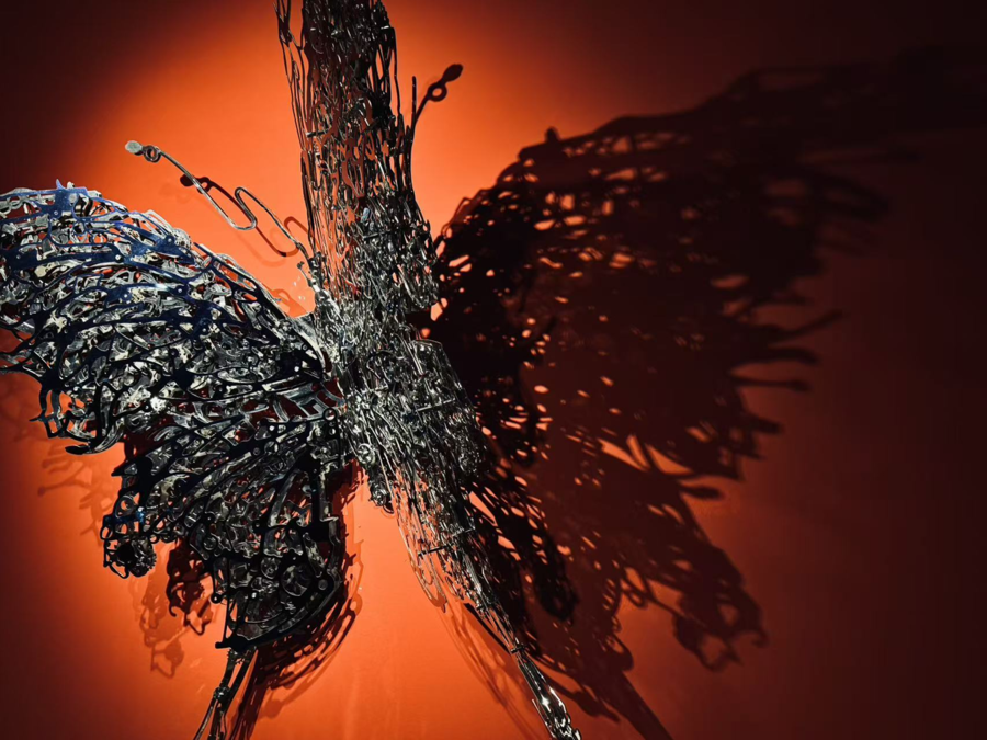 展览主题“赛博骐骥,光年一跃”,寓意在科技飞速发展的今天,艺术也能以一种独特的方式连接过去与未来。作为喜爱机械和游戏的艺术家,夏航擅长用机械零件重新组合日常物品,构建出他想象中的未来机械世界。作品外表是金属结构,内部多采用类似榫卯的中国传统工艺进行组装巨牛盈,体现出他对本土文化的理解与运用。展览探讨“力”与“美”、“控制”与“自由”的共生关系,展品既是对科技浪潮的回应,亦是对东方美学中“气韵生动”的当代诠释。《礼物》由不锈钢和亚格力材料制作的1850个零件拼接而成。《星鞍》则通过现代工业机械艺术,重新诠释了中国传统的“天马”形象。《迷芳》以蝴蝶为原型,蝴蝶在中国文化中象征蜕变与自由,在与现代科技结合后,展现出独特的诗意与未来感。