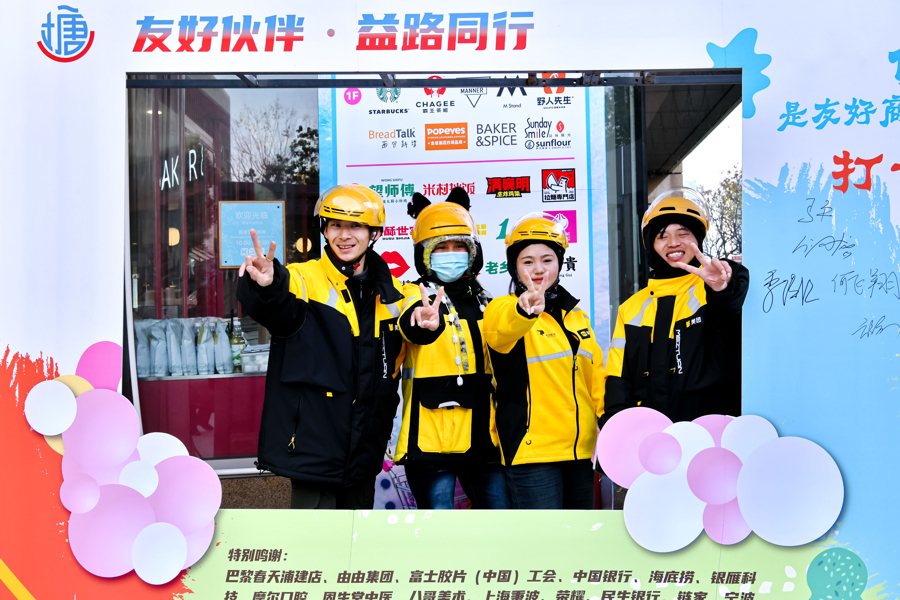 塘桥街道相关负责人介绍,友好商圈的核心是“协同互助、彼此成就”,既要为新就业群体提供歇脚、充电、饮水等便利,更要让他们在城市中获得尊重与支持,同时以其融入为社区注入活力。巴黎春天浦建店负责人承诺将升级商业空间为“城市客厅”,商场服务台、公共休息区均向新就业群体开放。华为门店将为骑士提供免费手机贴膜厅服务;海底捞、老乡鸡等餐饮商户将设置专属休息区域,精准回应新就业群体“时间贵如金”的现实需求。富士胶片(中国)工会与街道总工会将继续围绕阵地服务、活动服务、培训服务、关怀服务四大主题长期开展“新就业群体公益服务合作伙伴”公益合作项目。